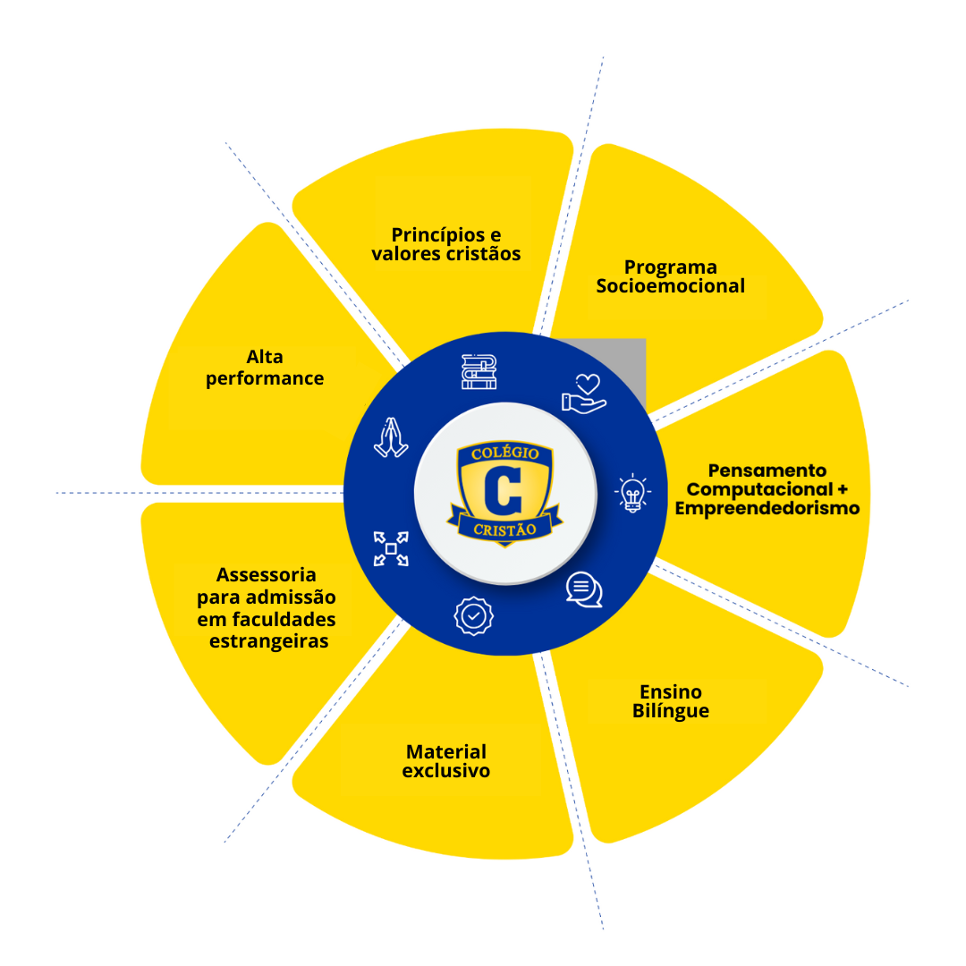 A metodologia de ensino utilizada é atual, moderna e eficiente. Oferecemos aos nossos alunos um excelente material didático, rico pedagogicamente e que respeita os princípios e valores. Através de uma parceria estratégica e exclusiva, o Colégio Cristão e a Rede Cristã se uniram para impactar e transformar vidas. Além de aulas que servem para toda a vida, como: empreendedorismo, educação financeira, atividades extracurriculares. E ainda, nesta visão de futuro, onde se comunicar em outro idioma é uma habilidade imprescindível, nós do Colégio Cristão somos bilíngues todo dia!